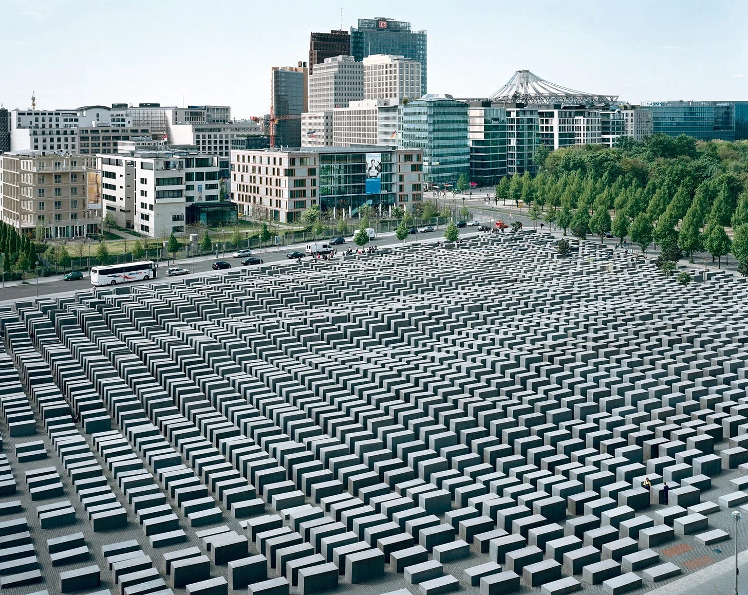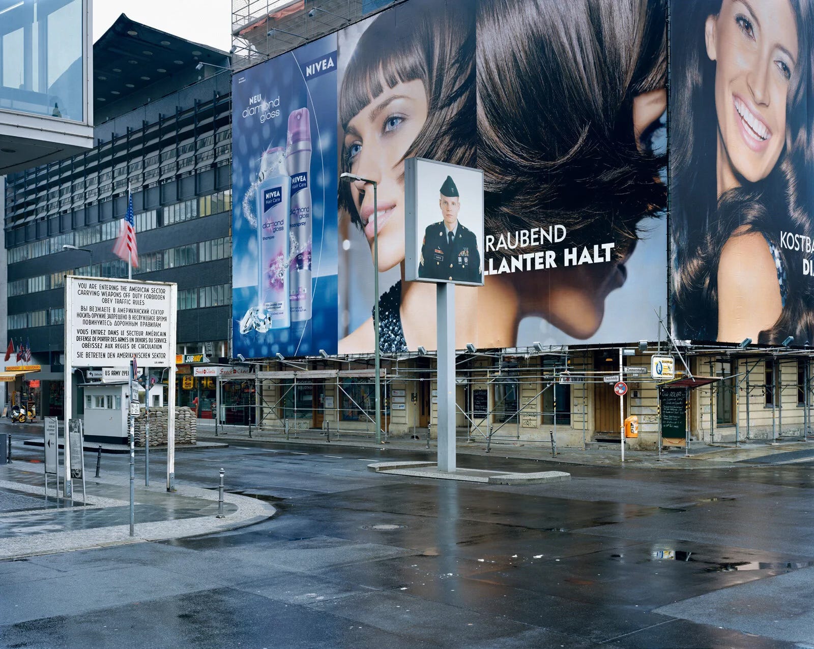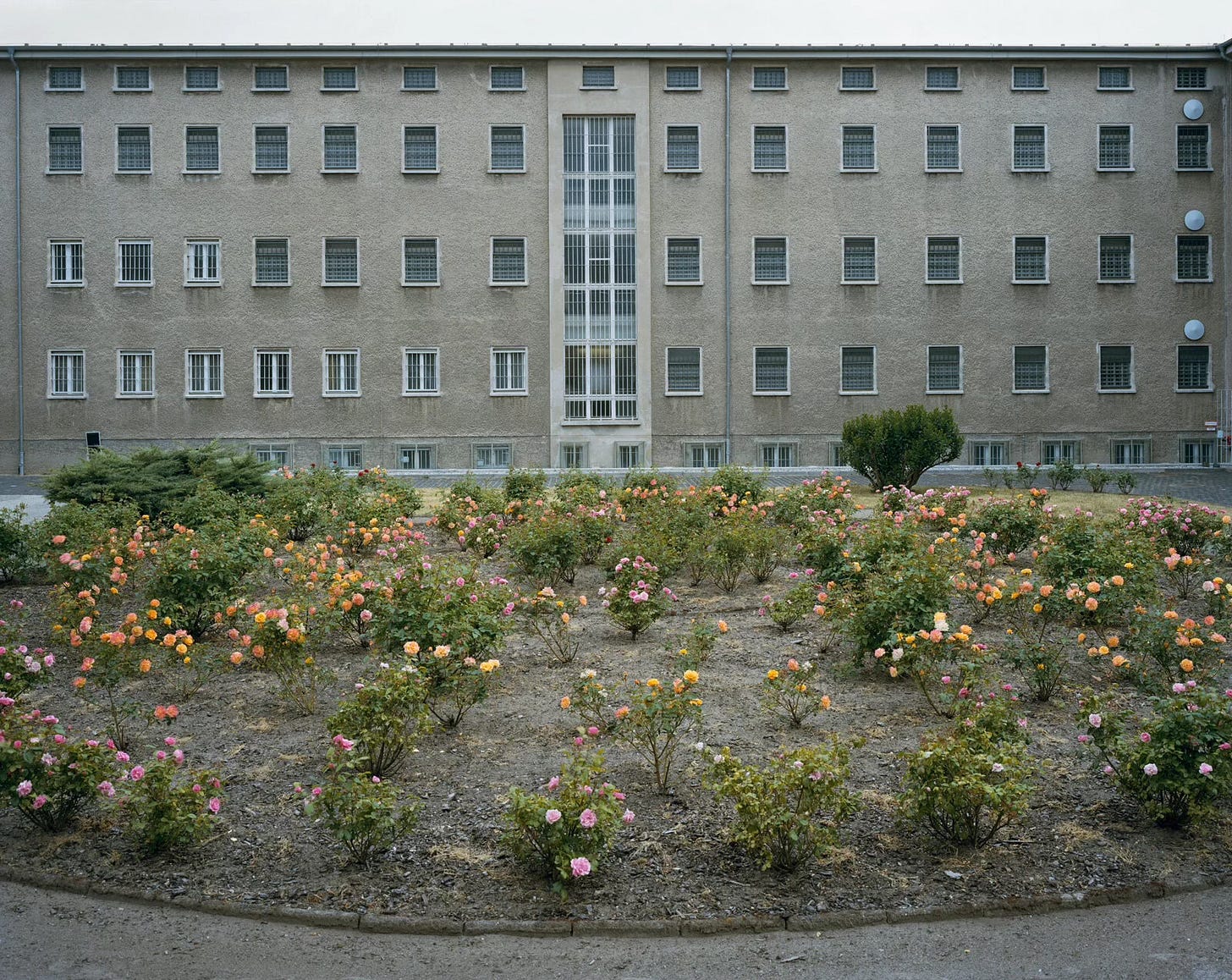 Later, in his European work, Epstein continued to explore how memory occupies physical space. Photographs of Berlin show the tension between history and redevelopment—the regimented concrete slabs of the Holocaust Memorial stretching endlessly, the sterile façade of a former prison softened by a small rose garden, the ghost of the Cold War lingering near Checkpoint Charlie. His framing is deliberate and restrained, as if acknowledging that beauty and tragedy can coexist in the same frame.