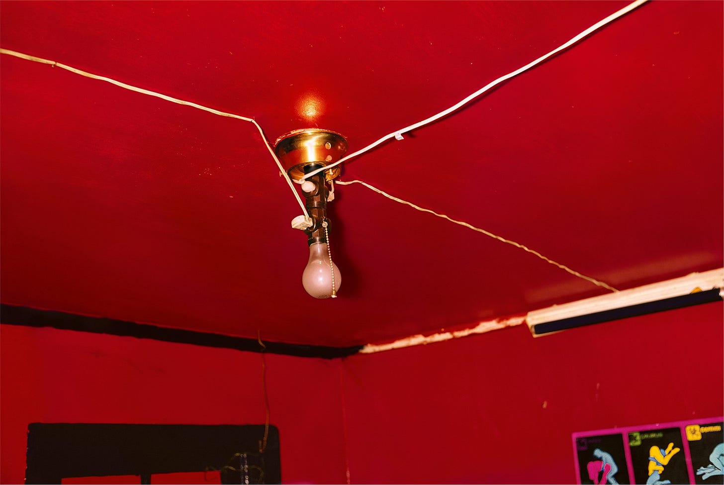 Sometimes referred to as Greenwood, Mississippi, this photograph of a deep red ceiling, illuminated by a single light bulb, is one of Eggleston’s most famous works. The intensity of the red is so strong that even Eggleston himself said, “I’ve never seen it reproduced on the page to my satisfaction.” It perfectly illustrates Shore’s point about how difficult red is to render without losing depth.